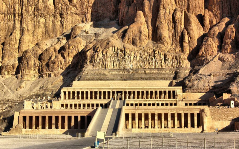 Temple of Hatshepsut is one of the most beautiful & best preserved of all of the temples of Ancient Egypt you can find at Luxor . The temple was built on three levels with two wide ramps in a central position joining the levels together. Rising out of the desert Plain, in a series of terraces, The temple of Hatshepsut Mergs with sheer limestone Cliffs of the eastern face of the Theban Mountain as if Nature herself had built this Extraordinary monument.