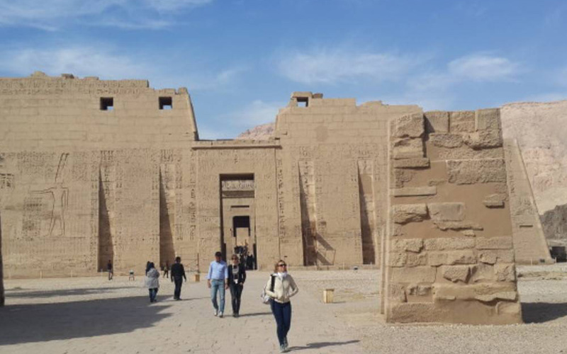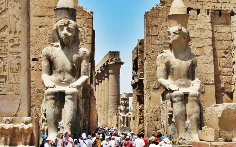 Colossi of Memnon are two massive stone statues of king Amenhotep III are the only remains of a complete mortuary temple. The statues are made from blocks of quartzite sandstone which exist in Cairo then moved 700 KM to Luxor , The two statues Know as the Colossi of Memnon, Rising about 18 M from the plain, They are the remains of what was once the largest complex on the west bank, Built by Amenhotep the Third. At around noon you will have lunch in a local restaurant in Luxor,